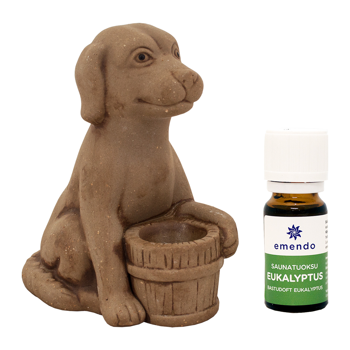 Saunakoira tuo saunaan miellyttävän tuoksun ja on samalla veikeä koriste. Aseta esim. saunan lauteille tai ikkunalle. Tiputa 2-6 tippaa saunatuoksua kuppiin. Saunan lämmössä öljy haihtuu ja levittää hyvää tuoksua.